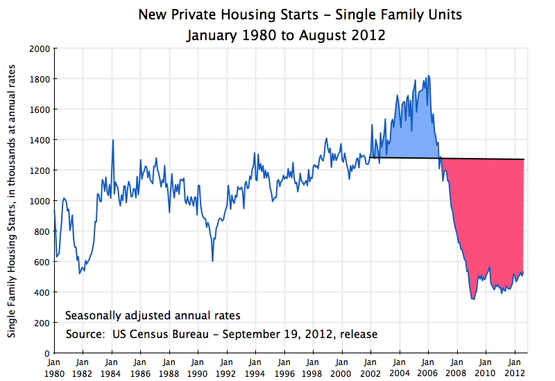One can look at the adequacy of the number of new homes being built each year – adding to the existing stock of housing – in a number of different ways. We will examine several in this section, and they all point to the problem of not enough homes being built.