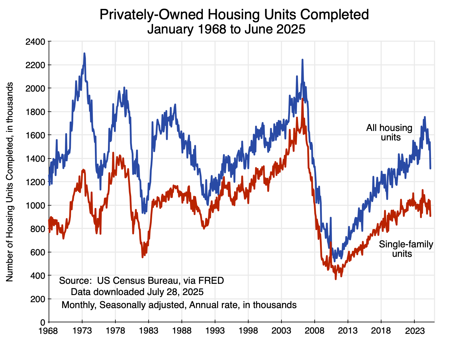 The number being completed has fluctuated widely over the years but fell especially sharply following the bursting of the housing bubble in 2007.