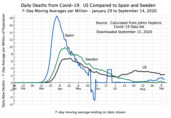 Finally, as I finish writing this, the number of deaths in the US from this terrible virus has just surpassed 250,000. The number of confirmed cases has reached 11.6 million, with this figure rising by 1 million in just the past week. A tremendous surge is underway, far surpassing the initial wave in March and April (when the country was slow to discover how serious the spread was, due in part to the botched development in the US of testing for the virus), and far surpassing also the second, and larger, wave in June and July (when a number of states, in particular in the South and Southwest, re-opened too early and without adequate measures, such as mask mandates, to keep the disease under control). Daily new Covid-19 cases are now close to 2 1/2 times what they were at their peak in July.