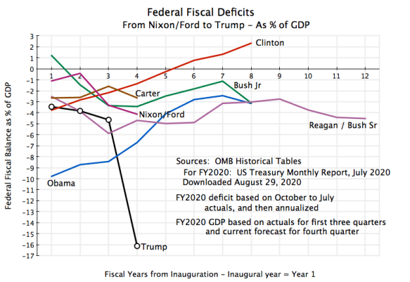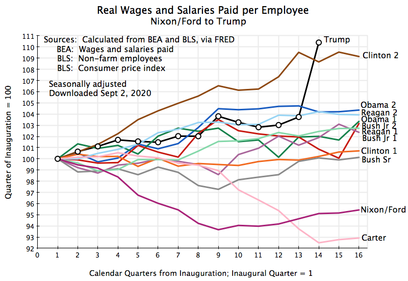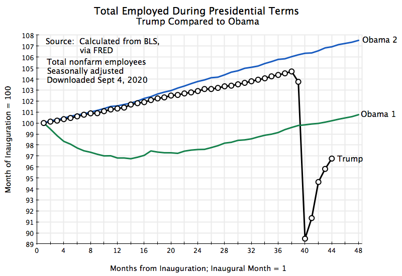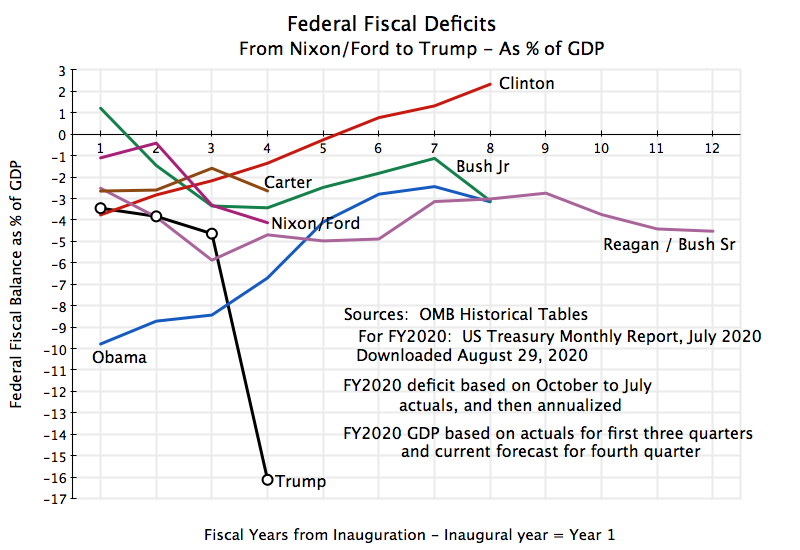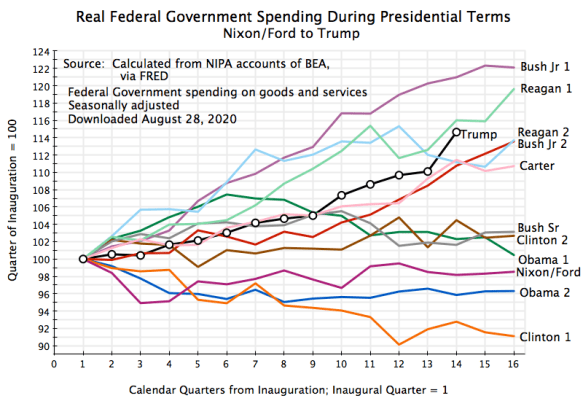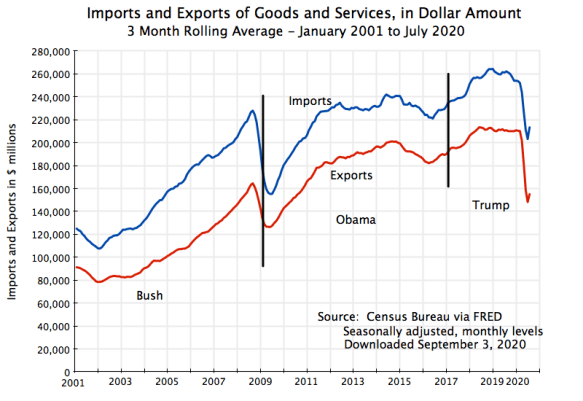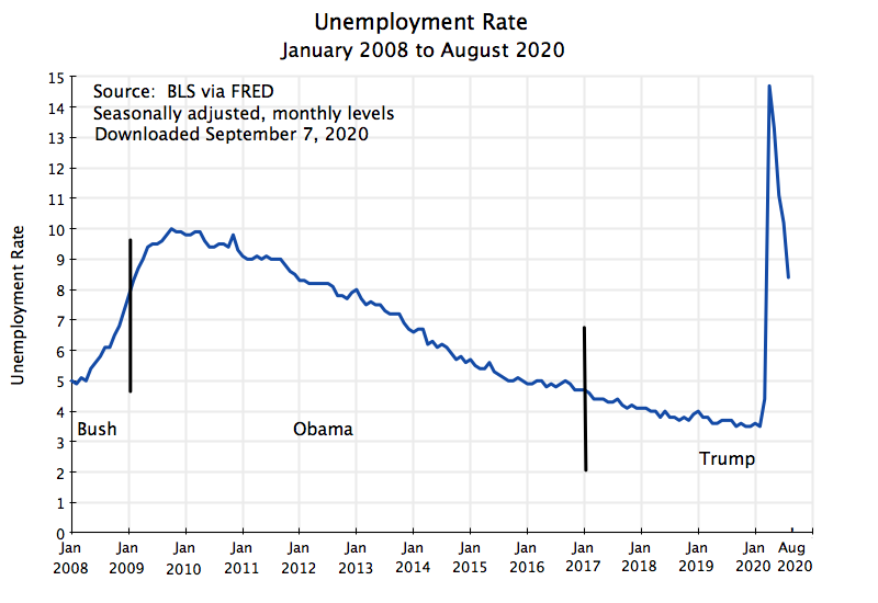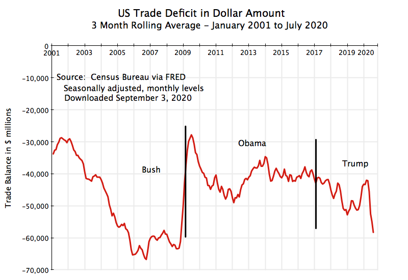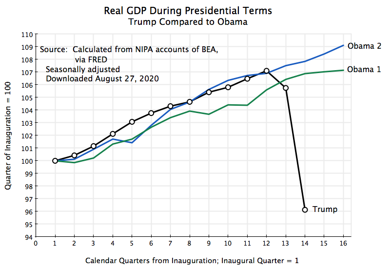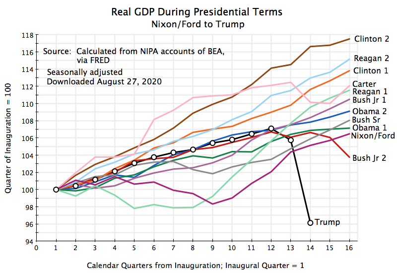 The previous post on this blog described the slowdown in US growth since the 2008 crash. GDP fell sharply in the second half of that year – the last year of the Bush administration – due to the crisis in home mortgages leading to a broad collapse in the financial markets. It led to what has been termed the “Great Recession”. But unlike in past recessions, GDP never recovered to its previous trend path, even though the unemployment rate fell to lows not seen since the 1960s. GDP remains well below that previous path today. The chart above shows how that gap opened up and has persisted since 2008.