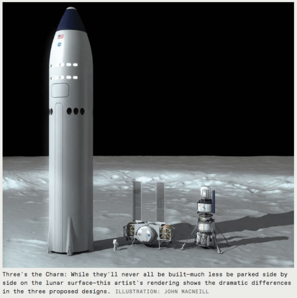 3)  Comparison of the Three HLS Proposals:  SpaceX, Blue Origin, and Dynetics